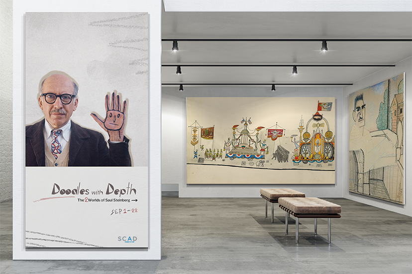 The exhibition spotlights Saul Steinberg's emblematic creations. With an emphasis on accessibility, the design fuses Steinberg's rich legacy with interactive features, ensuring that a diverse audience connects deeply with his art within the contemporary context of the SCAD Museum of Art, thereby elevating visitor interest and participation.