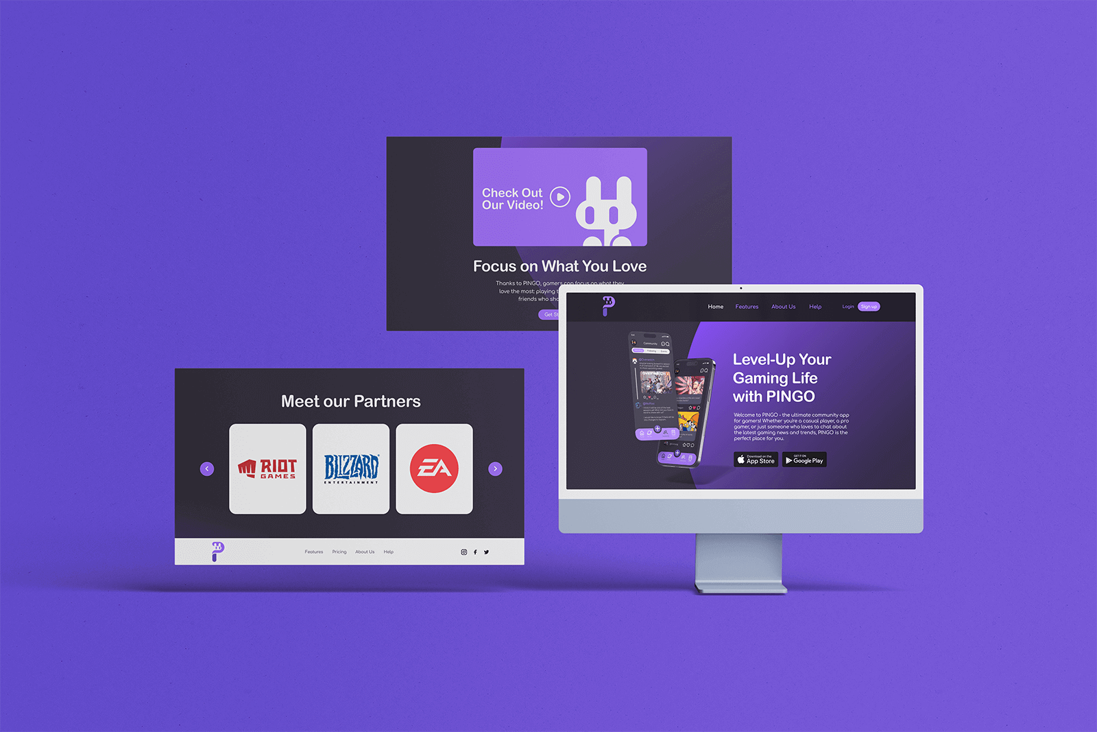 The PINGO project unveils a mobile app interface designed as a vibrant hub for gamers, offering up-to-date gaming news, fostering discussions, and inviting valuable feedback to game manufacturers. The primary goals are to grow a loyal user base, attract new users, and establish profitable collaborations with game makers to enhance its market prominence. Our unique design features a bunny mascot and a purple-themed, user-centric interface, which includes a dark mode to minimize visual fatigue for gamers, underlining our commitment to an optimal user experience.